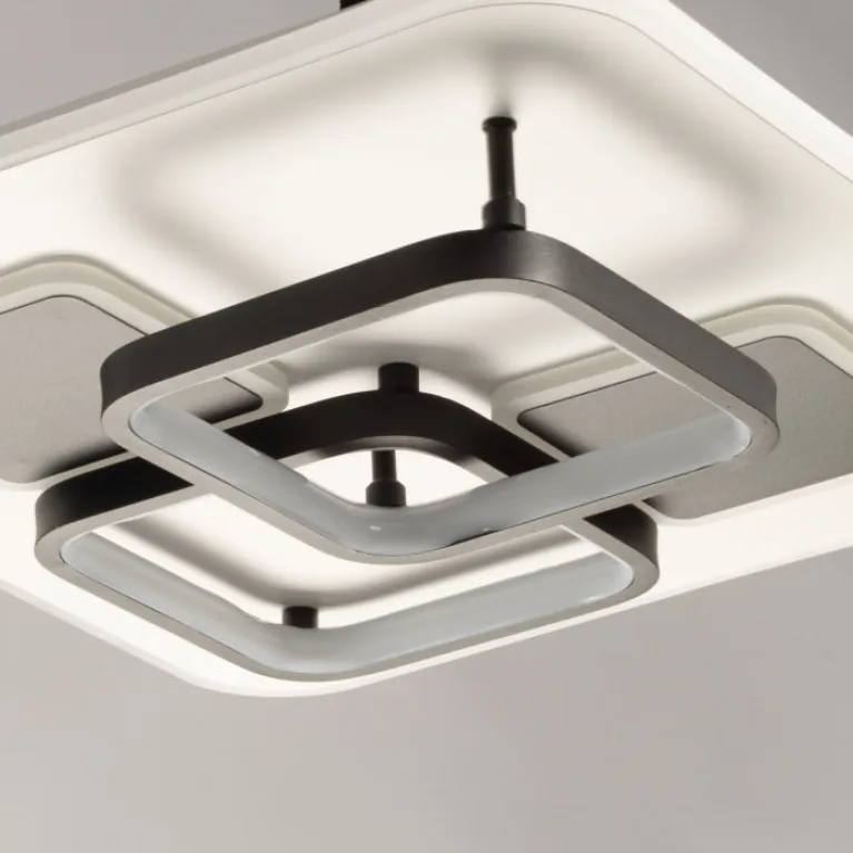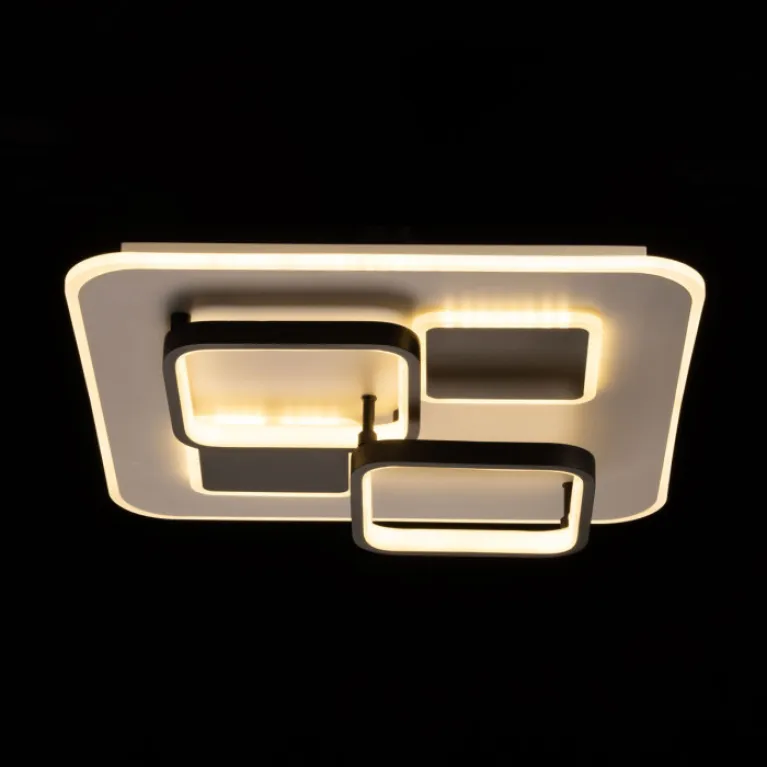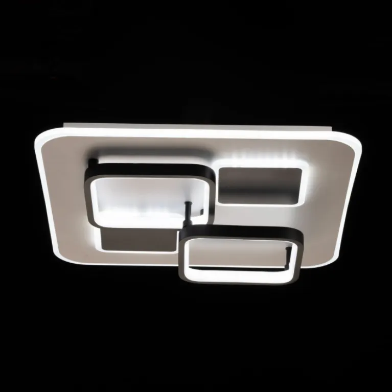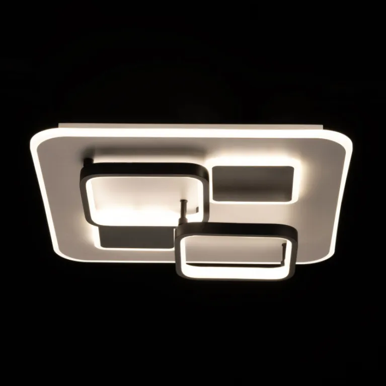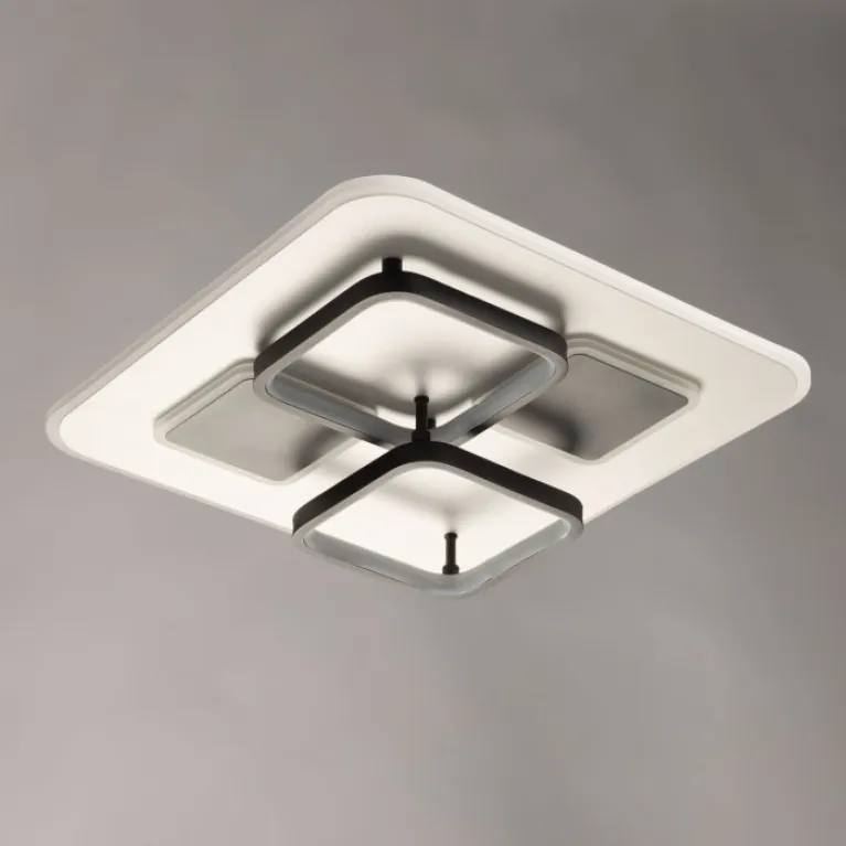 Преобладающий цвет плафонов: Белый, арматуры: Белый; материал изготовления арматуры: Металл, размеры, мм: длина 490 / ширина 490 / высота 130 Общая мощность – 150 Ватт, а максимальная площадь освещения до 28 м2. Основной тип ламп, предусмотренный производителем: Светодиодная с цоколем LED. В зависимости от предпочтений можно использовать лампы теплового, холодного или нейтрального света, за исключением люстр с типом цоколя LED.