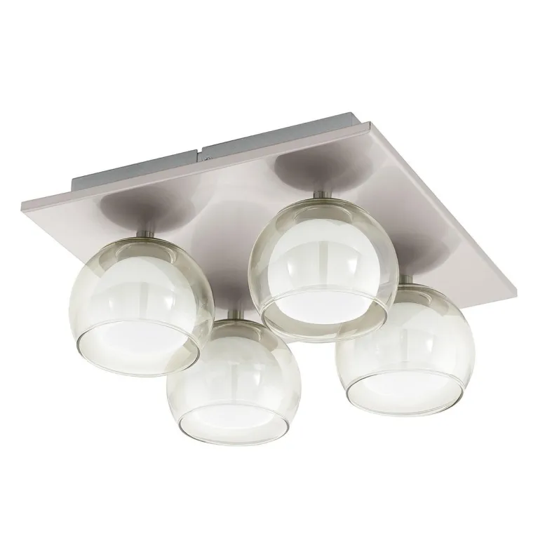 Преобладающий цвет плафонов: Янтарный, арматуры: Матовый, никель; материал изготовления арматуры: Металл, размеры, мм: длина 270 / ширина 270 / высота 130 Общая мощность – 13 Ватт. Основной тип ламп, предусмотренный производителем: Светодиодная с цоколем LED. В зависимости от предпочтений можно использовать лампы теплового, холодного или нейтрального света, за исключением люстр с типом цоколя LED.