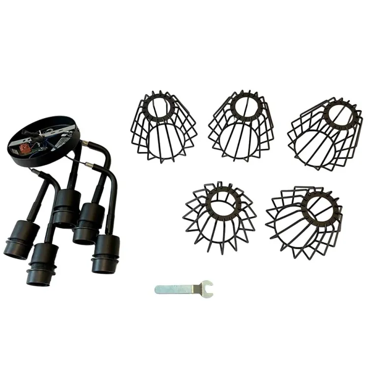 Преобладающий цвет плафонов: Черный, арматуры: Черный; материал изготовления арматуры: Металл, размеры, мм: / высота 190 / диаметр 745. Общая мощность – 300 Ватт. Основной тип ламп, предусмотренный производителем: Накаливания с цоколем E27. В зависимости от предпочтений можно использовать лампы теплового, холодного или нейтрального света, за исключением люстр с типом цоколя LED.