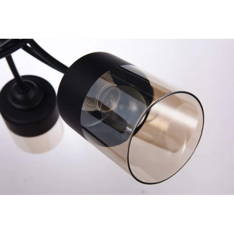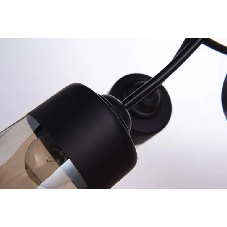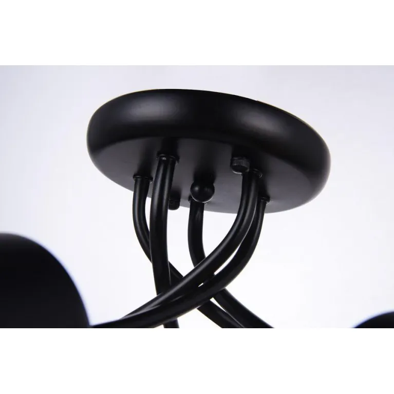 Корпус люстры выполнен из прочного металла с черным матовым покрытием, который прекрасно гармонирует с различными стилями интерьера. Плафоны изготовлены из белого матового стекла, придающего свету мягкость и равномерность распространения.