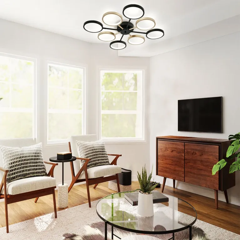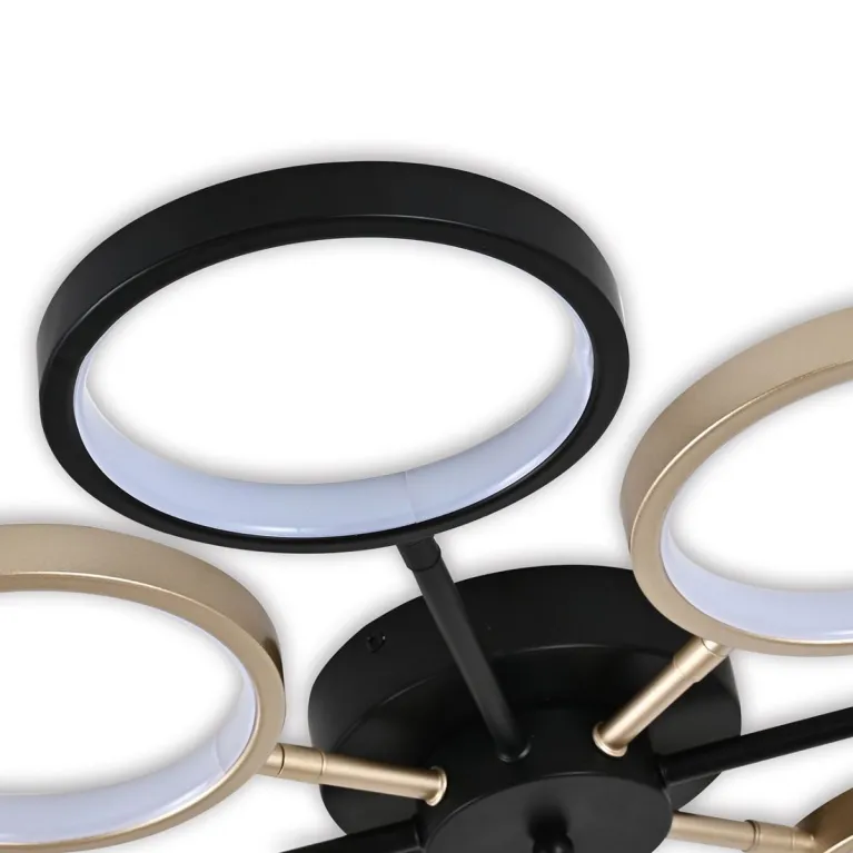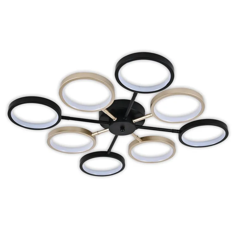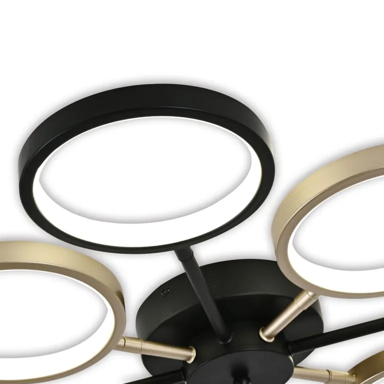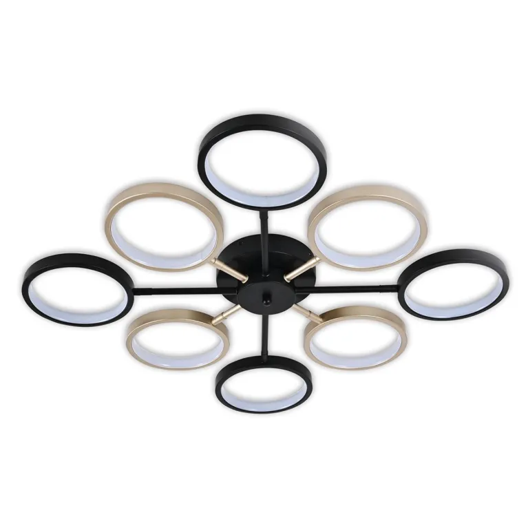 Преобладающий цвет плафонов: Разноцветный, арматуры: Черный; материал изготовления арматуры: Металл, размеры, мм: / высота 80 / диаметр 760. Общая мощность – 50 Ватт, а максимальная площадь освещения до 11 м2. Основной тип ламп, предусмотренный производителем: Светодиодная с цоколем LED. В зависимости от предпочтений можно использовать лампы теплового, холодного или нейтрального света, за исключением люстр с типом цоколя LED.