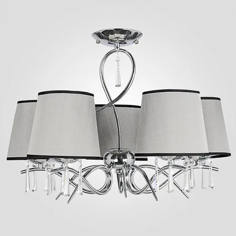 Люстра оснащена пятью лампами, которые обеспечивают яркое и равномерное освещение. Она идеально подходит для гостиной, столовой или спальни, добавляя уюта и гармонии вашему дому. Основание выполнено из прочного металла с хромированным покрытием, что придаёт изделию современный и стильный вид.
