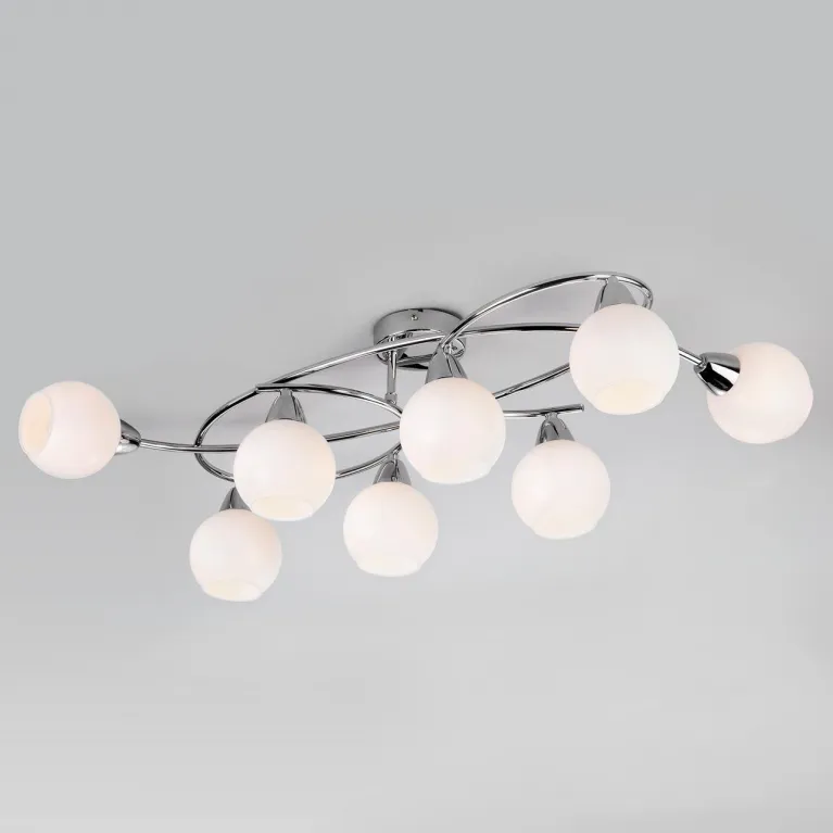 Люстра оснащена восемью лампами, что обеспечивает яркое и равномерное освещение пространства. Она идеально подходит для гостиной, столовой или спальни, создавая приятную атмосферу и делая комнату более просторной и уютной.