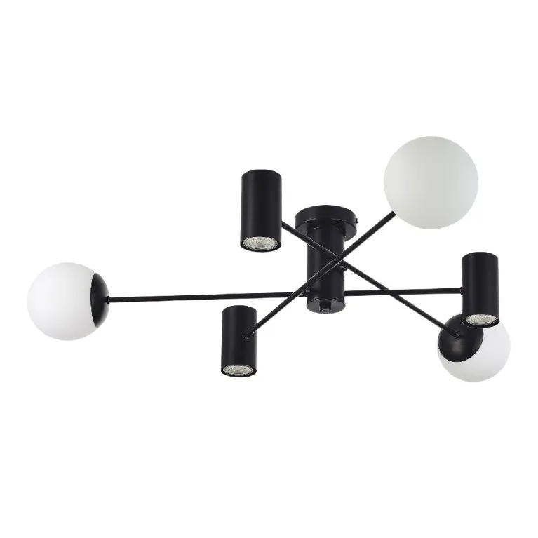 Преобладающий цвет плафонов: Белый, арматуры: Черный; материал изготовления арматуры: Металл, размеры, мм: / высота 200 / диаметр 1000. Общая мощность – 65 Ватт, а максимальная площадь освещения до 14 м2. Основной тип ламп, предусмотренный производителем: Светодиодная с цоколем LED. В зависимости от предпочтений можно использовать лампы теплового, холодного или нейтрального света, за исключением люстр с типом цоколя LED.