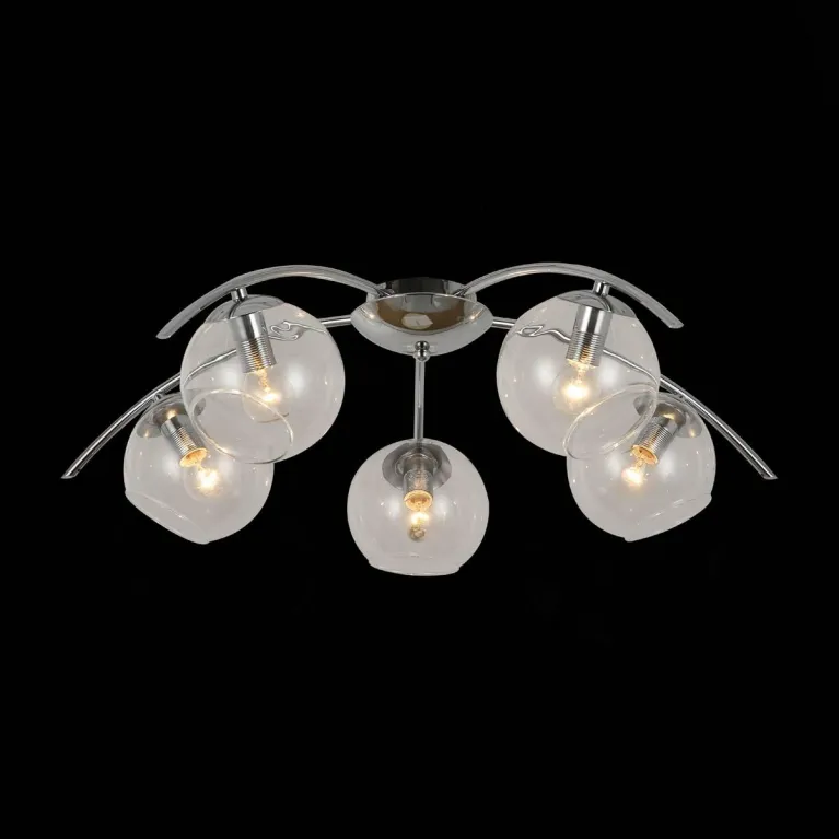 Люстра оснащена пятью лампами типа E27, что обеспечивает яркое и равномерное освещение. Она изготовлена из прочного металла и имеет черное матовое покрытие, которое придает ей современный и лаконичный вид.