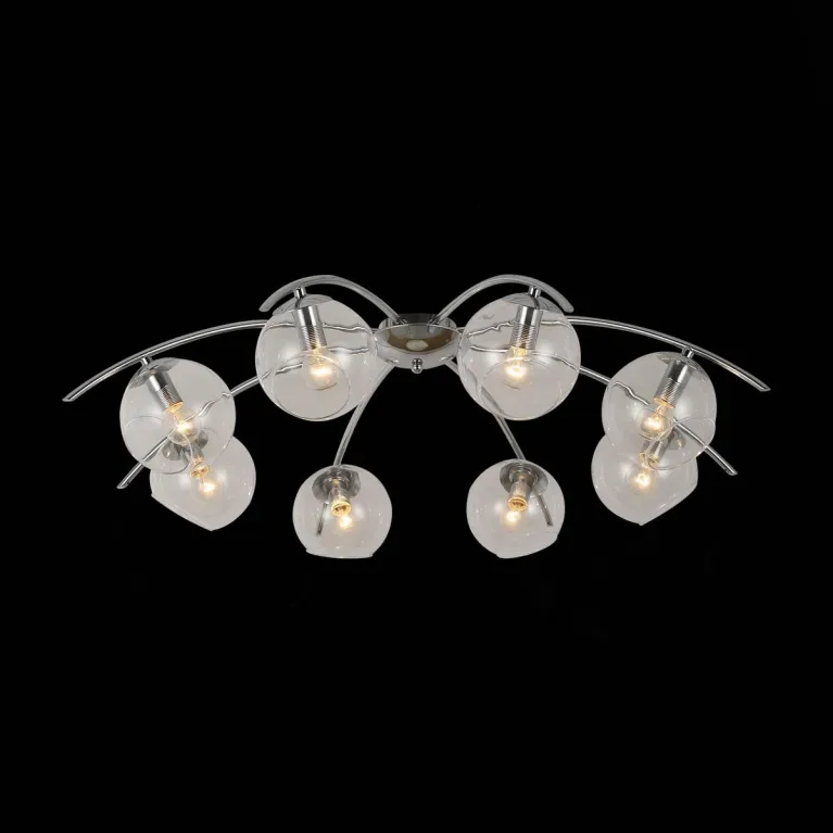 Люстра оснащена восемью лампами, что обеспечивает яркое и равномерное освещение. Она совместима с лампами типа E14, что позволяет использовать различные виды ламп — от традиционных накаливания до современных энергосберегающих и светодиодных.
