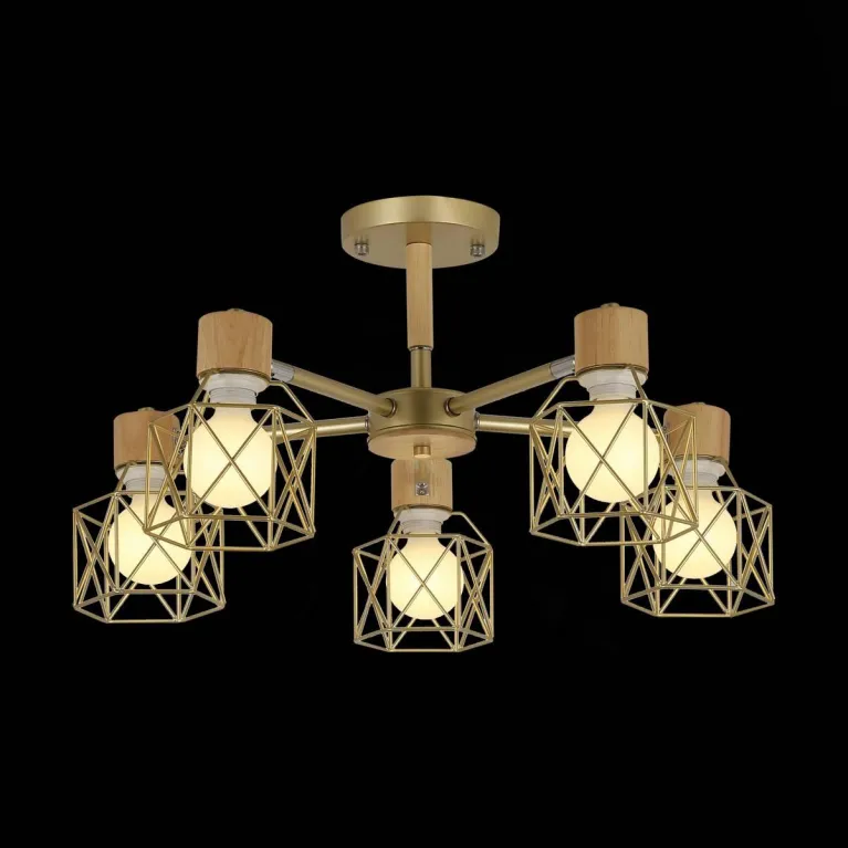 Люстра оснащена пятью лампами, которые совместимы с цоколем E27. Это позволяет использовать различные типы ламп, включая энергосберегающие и светодиодные, что обеспечивает максимальную гибкость в выборе освещения. Мощность каждой лампы — 60 Вт, что гарантирует яркое и равномерное освещение пространства.
