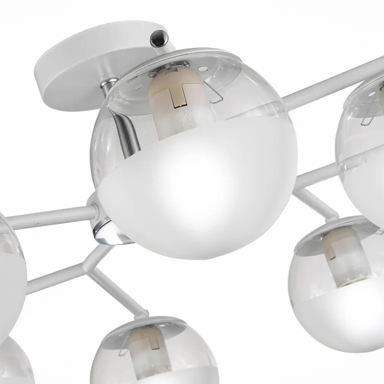 Корпус люстры выполнен из прочного металла и имеет эффектное хромированное покрытие, придающее изделию современный и стильный вид. Плафоны изготовлены из белого матового стекла, которое мягко рассеивает свет и создает приятную атмосферу в помещении.