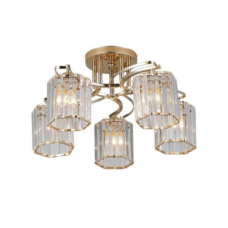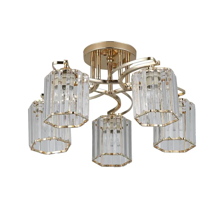 Светильник оснащен пятью источниками света с цоколем E27, что позволяет использовать различные типы ламп, включая энергосберегающие и светодиодные. Суммарная мощность ламп — 300 Вт, что обеспечивает яркое и равномерное освещение пространства.