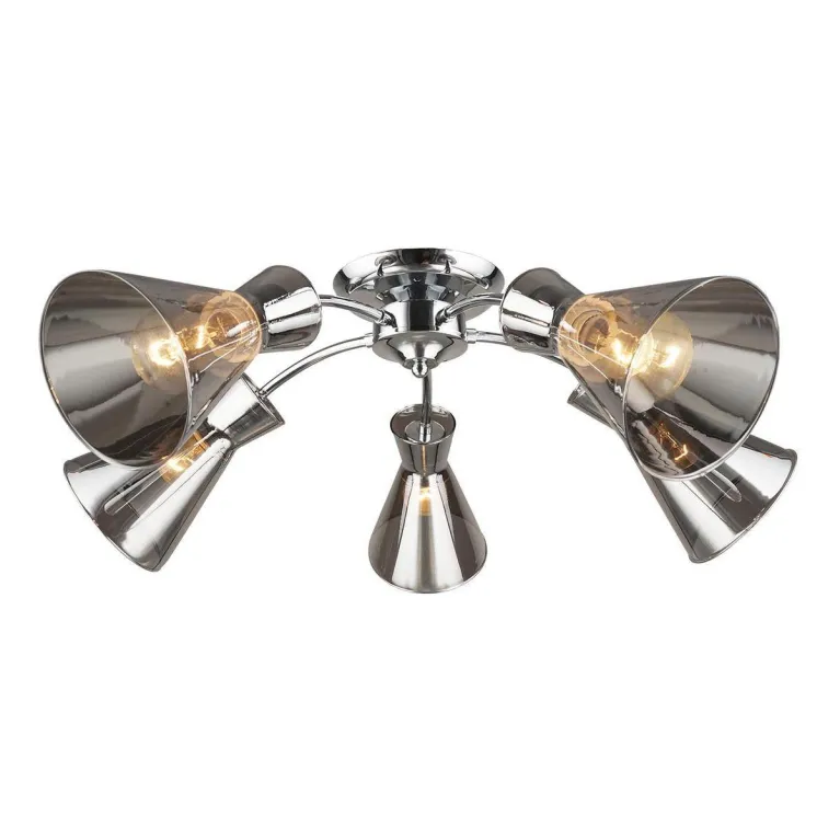 Люстра оснащена пятью лампами, что обеспечивает яркое и равномерное освещение пространства. Она идеально подходит для гостиной, столовой или спальни, добавляя уюта и гармонии в ваш дом. Основание выполнено в стильном хромированном корпусе, который прекрасно гармонирует с различными интерьерными решениями.