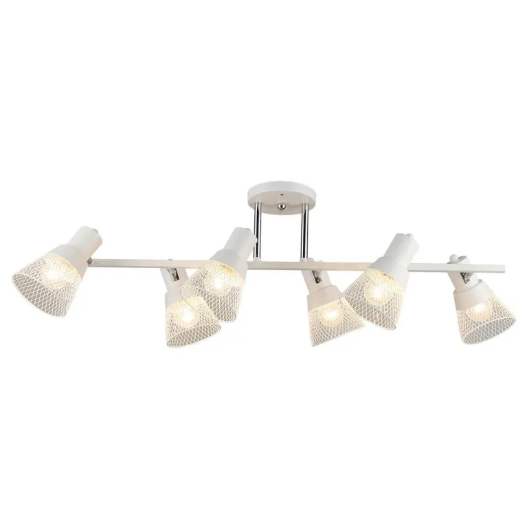 Корпус люстры выполнен из прочного металла с белым покрытием, которое придает изделию современный и элегантный вид. Плафоны изготовлены из матового стекла, что создает мягкое и ненавязчивое рассеивание света.