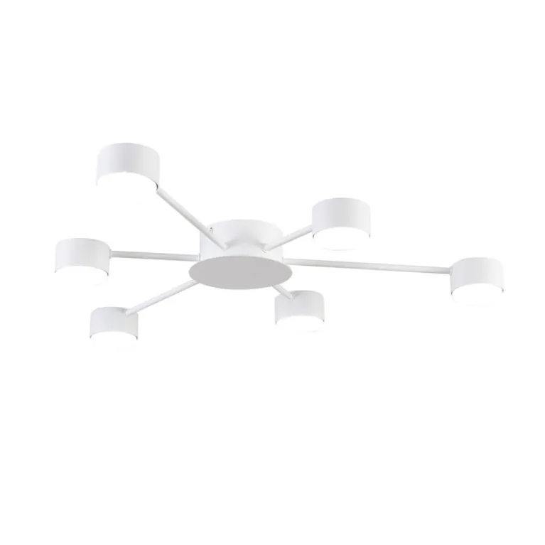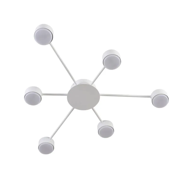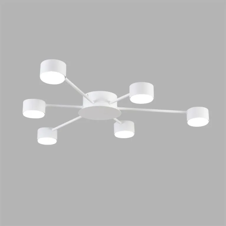 Преобладающий цвет плафонов: Белый, арматуры: Белый; материал изготовления арматуры: Металл, размеры, мм: / высота 73 / диаметр 780. Общая мощность – 42 Ватт, а максимальная площадь освещения до 8 м2. Основной тип ламп, предусмотренный производителем: Светодиодная с цоколем GX53. В зависимости от предпочтений можно использовать лампы теплового, холодного или нейтрального света, за исключением люстр с типом цоколя LED.