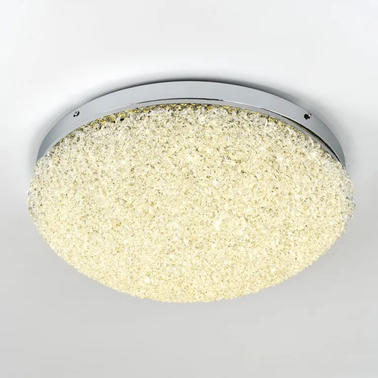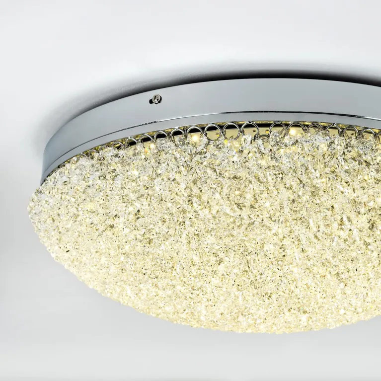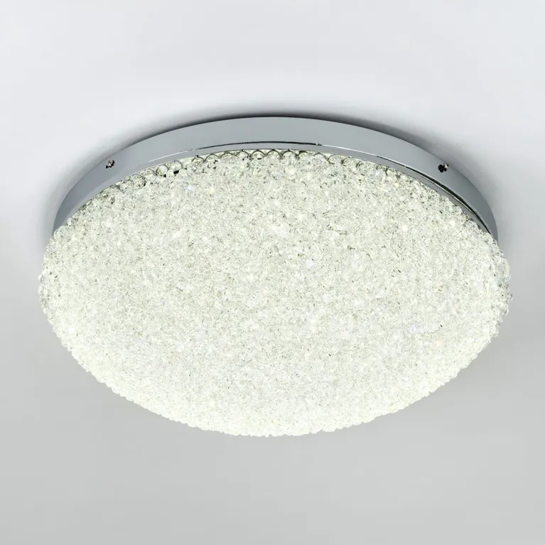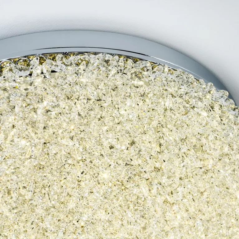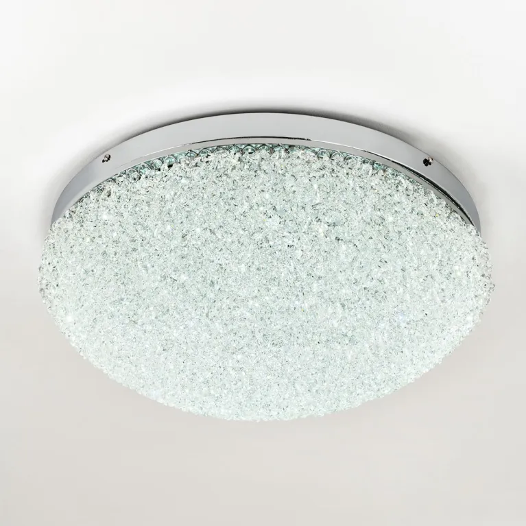 Преобладающий цвет плафонов: Прозрачный, арматуры: Хром; материал изготовления арматуры: Металл, размеры, мм: / высота 160 / диаметр 500. Общая мощность – 100 Ватт. Основной тип ламп, предусмотренный производителем: Светодиодная с цоколем LED. В зависимости от предпочтений можно использовать лампы теплового, холодного или нейтрального света, за исключением люстр с типом цоколя LED.