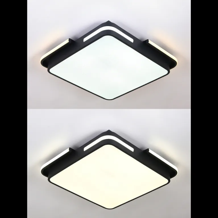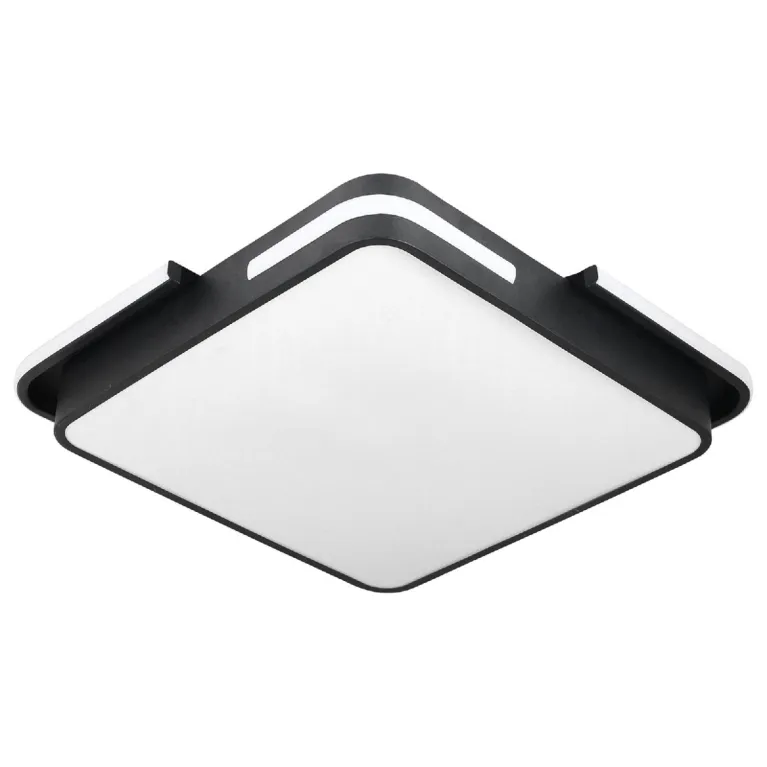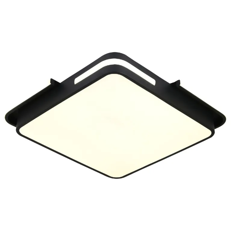 Преобладающий цвет плафонов: Белый, арматуры: Черный; материал изготовления арматуры: Металл, размеры, мм: длина 500 / ширина 500 / высота 95 Общая мощность – 100 Ватт, а максимальная площадь освещения до 18 м2. Основной тип ламп, предусмотренный производителем: Светодиодная с цоколем LED. В зависимости от предпочтений можно использовать лампы теплового, холодного или нейтрального света, за исключением люстр с типом цоколя LED.