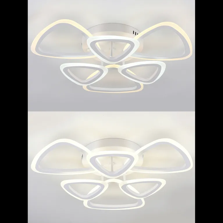 Преобладающий цвет плафонов: Белый, арматуры: Белый; материал изготовления арматуры: Металл, размеры, мм: / высота 120 / диаметр 640. Общая мощность – 120 Ватт, а максимальная площадь освещения до 25 м2. Основной тип ламп, предусмотренный производителем: Светодиодная с цоколем LED. В зависимости от предпочтений можно использовать лампы теплового, холодного или нейтрального света, за исключением люстр с типом цоколя LED.