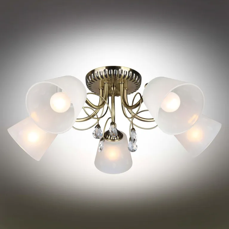 Люстра оснащена пятью лампами типа GU10, которые обеспечивают яркое и равномерное освещение. Суммарная мощность светильников составляет 50 Вт, что эквивалентно лампам накаливания, но благодаря современным технологиям, потребляет значительно меньше энергии.
