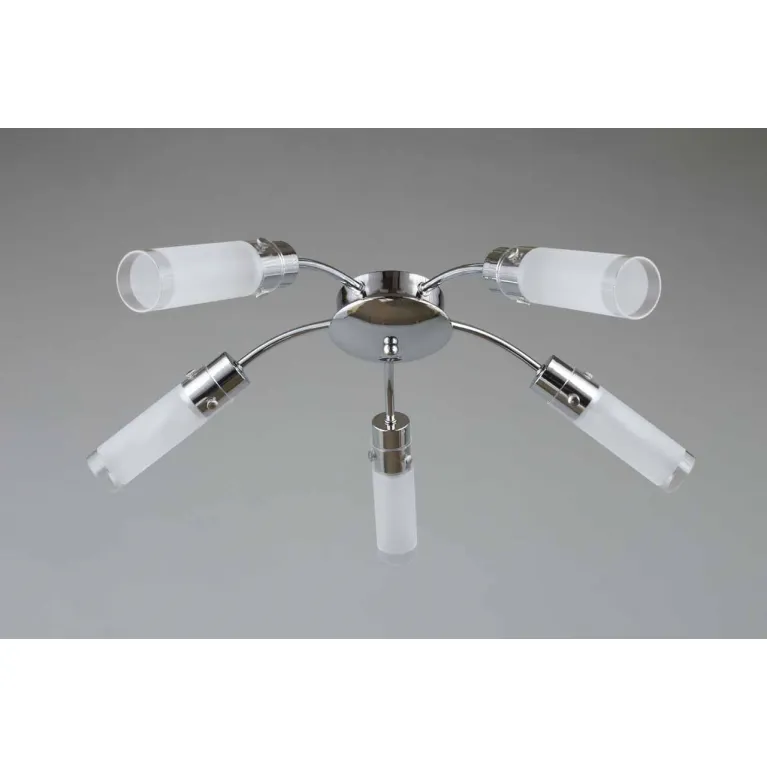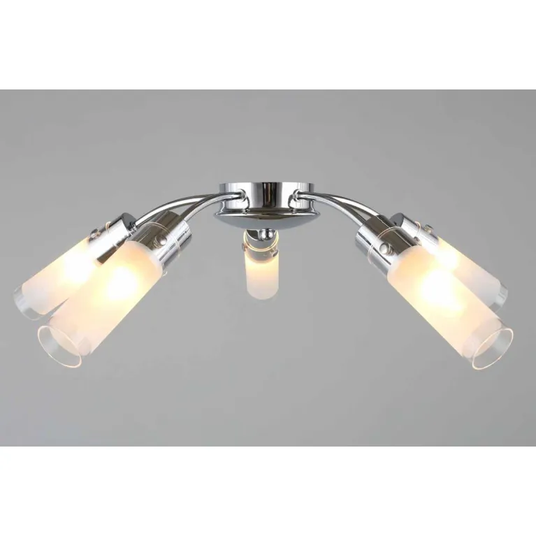 Люстра оснащена пятью лампами, что обеспечивает яркое и равномерное освещение пространства. Она изготовлена из прочного металла и качественного пластика, благодаря чему имеет долгий срок службы и стильный внешний вид. Основание светильника выполнено в универсальном белом цвете, что позволяет ему гармонично вписаться в любой интерьер.