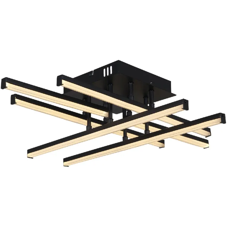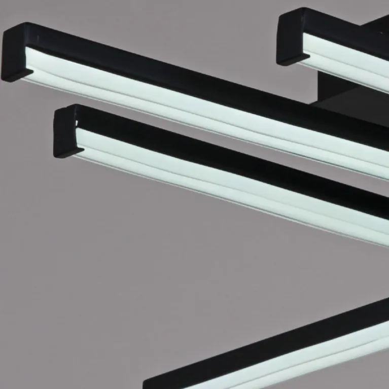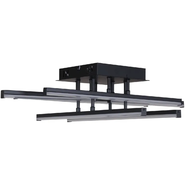Преобладающий цвет плафонов: Прозрачный, арматуры: Черный; материал изготовления арматуры: Металл, размеры, мм: длина 670 / ширина 500 / высота 150 Общая мощность – 84 Ватт, а максимальная площадь освещения до 16 м2. Основной тип ламп, предусмотренный производителем: Светодиодная с цоколем LED. В зависимости от предпочтений можно использовать лампы теплового, холодного или нейтрального света, за исключением люстр с типом цоколя LED.