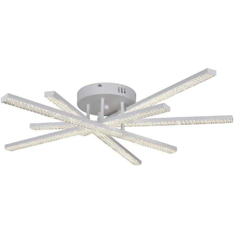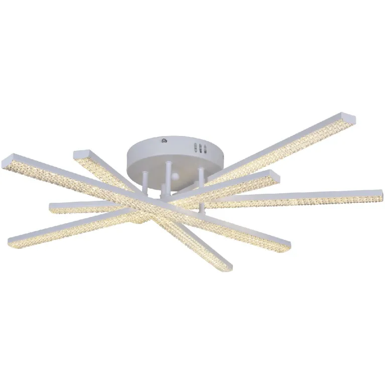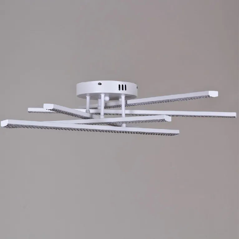 Преобладающий цвет плафонов: Прозрачный, арматуры: Белый; материал изготовления арматуры: Металл, размеры, мм: / высота 150 / диаметр 770. Общая мощность – 120 Ватт, а максимальная площадь освещения до 22 м2. Основной тип ламп, предусмотренный производителем: Светодиодная с цоколем LED. В зависимости от предпочтений можно использовать лампы теплового, холодного или нейтрального света, за исключением люстр с типом цоколя LED.