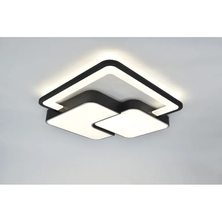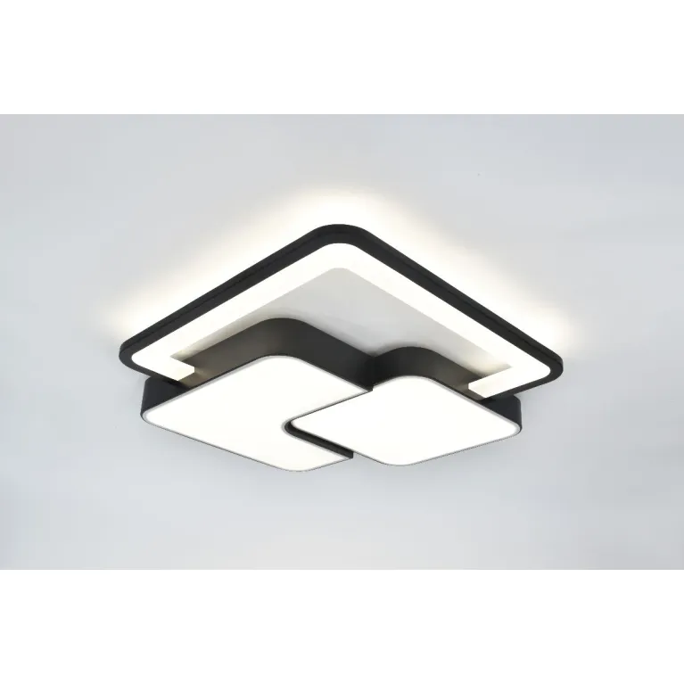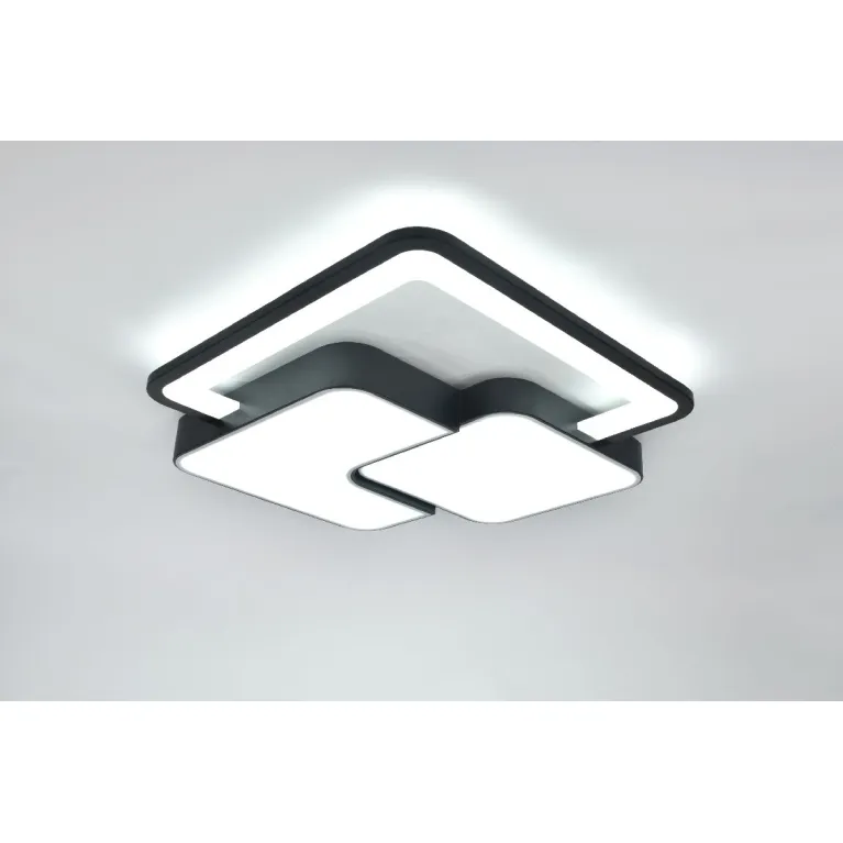 Преобладающий цвет плафонов: Белый, арматуры: Черный; материал изготовления арматуры: Металл, размеры, мм: длина 520 / ширина 520 / высота 50 Общая мощность – 105 Ватт, а максимальная площадь освещения до 26 м2. Основной тип ламп, предусмотренный производителем: Светодиодная с цоколем LED. В зависимости от предпочтений можно использовать лампы теплового, холодного или нейтрального света, за исключением люстр с типом цоколя LED.