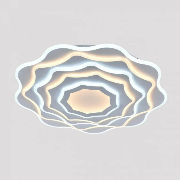 Люстра оснащена светодиодными источниками света, которые обеспечивают яркое и равномерное освещение. Суммарная мощность светодиодов составляет 96 Вт, что эквивалентно традиционным лампам накаливания, но при этом потребляет значительно меньше энергии, что делает эту модель энергоэффективной и экономичной в использовании.