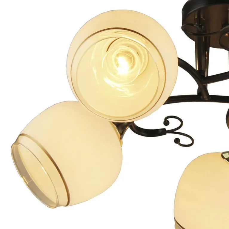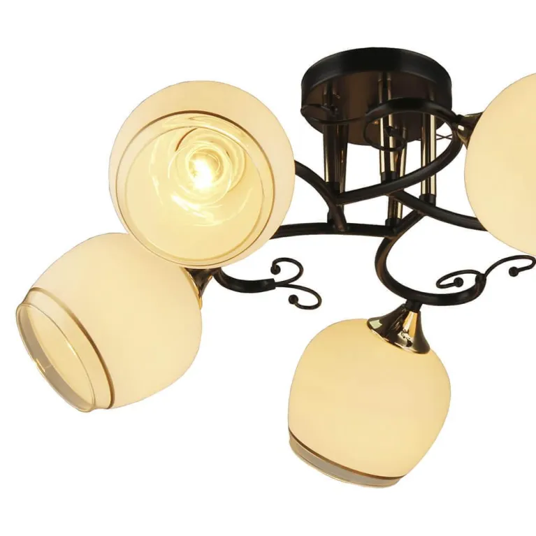 Корпус люстры выполнен из прочного металла с черным матовым покрытием, который прекрасно гармонирует с различными стилями интерьера. Плафоны изготовлены из высококачественного пластика, что гарантирует долговечность и долговечность изделия.