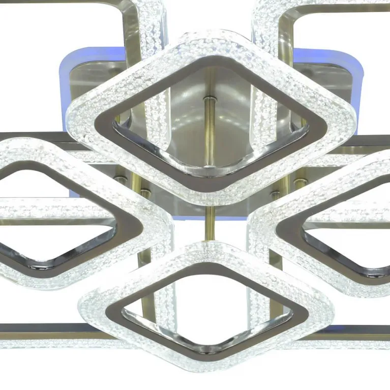 Люстра оснащена энергоэффективными светодиодами, которые обеспечивают яркое и равномерное освещение. Возможность RGB-подсветки позволяет создавать различные цветовые комбинации, добавляя интерьеру динамики и уникальности. Суммарная мощность светодиодов составляет 9 Вт, что эквивалентно традиционным лампам накаливания мощностью 60 Вт, благодаря чему люстра потребляет минимальное количество энергии и имеет долгий срок службы.