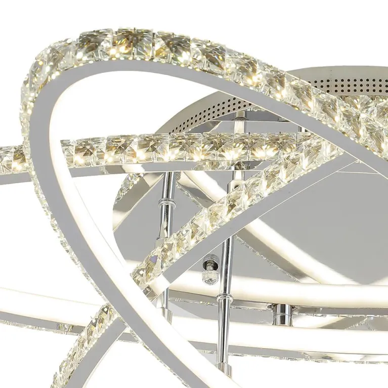 Подвесная конструкция люстры позволяет регулировать её высоту, что делает её удобной в установке и адаптируемой к разным высотам потолков. Надежное крепление гарантирует стабильность и безопасность в эксплуатации.