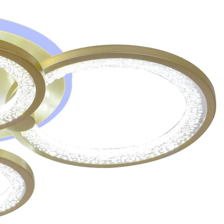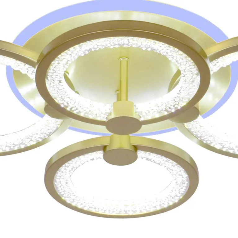 Люстра оснащена энергоэффективными светодиодами, которые обеспечивают яркое и равномерное освещение. Возможность RGB-подсветки позволяет создавать различные цветовые оттенки, добавляя интерьеру уникальности и стиля. Суммарная мощность светодиодов составляет 96 Вт, что обеспечивает световой поток в 5120 Лм - этого более чем достаточно для освещения просторных комнат.