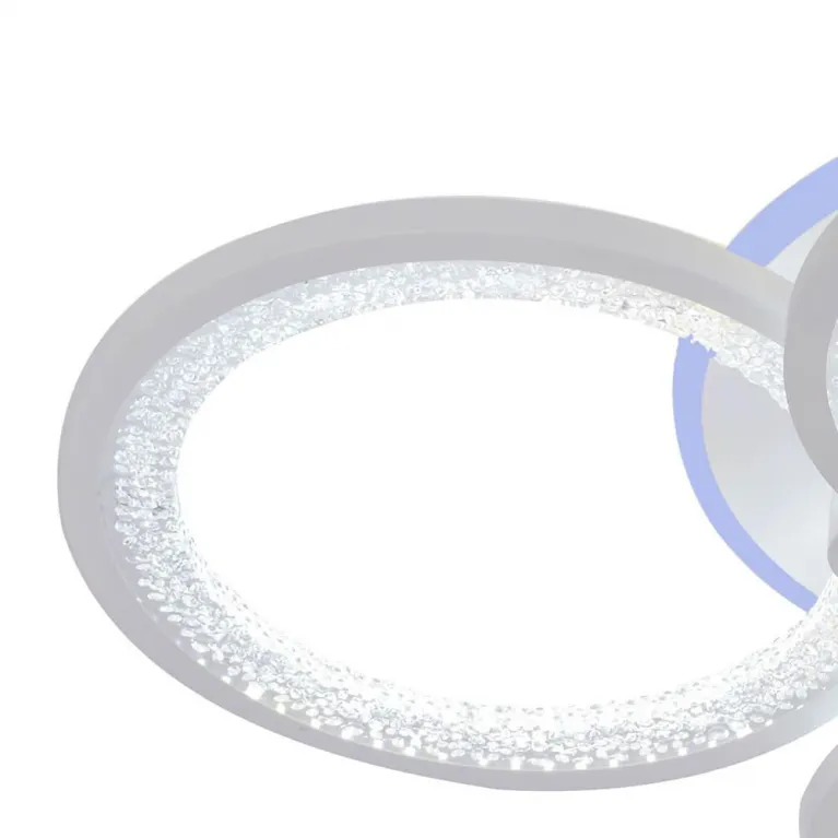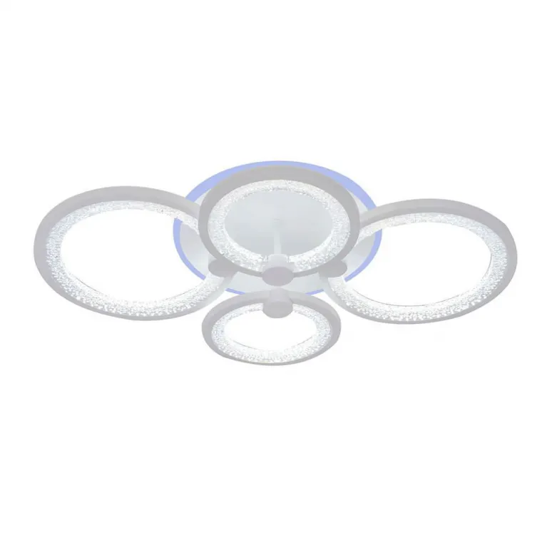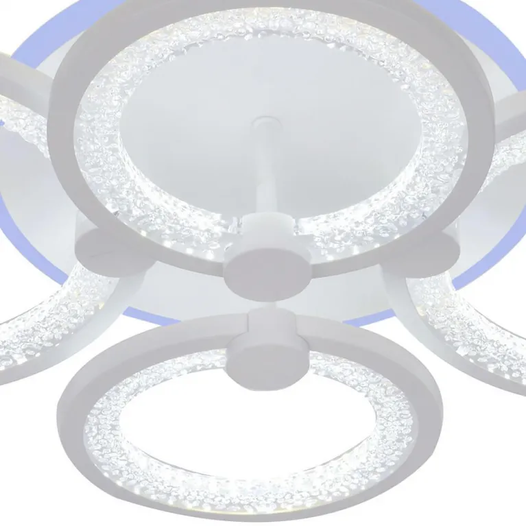 Эта люстра оснащена пятью лампами, которые могут быть источниками света типа GU10 мощностью до 35 Вт. Благодаря технологии RGB, она позволяет создавать различные варианты цветового освещения, от теплого белого до яркого синего, что делает её идеальным выбором для создания уютной атмосферы или эффектного визуального акцента в интерьере.