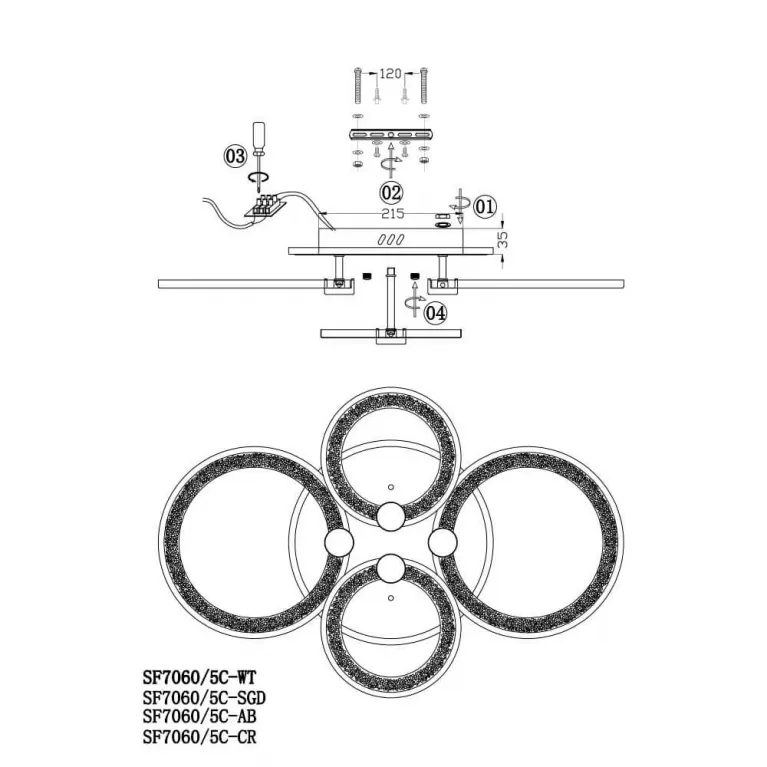 Потолочная люстра Seven Fires Khelmi SF7060-5C WT/RGB - это элегантное и стильное решение для вашего интерьера. Она идеально подходит для помещений со средним уровнем потолка, таких как гостиные, столовые или спальни, добавляя им утончённой роскоши и современного стиля.