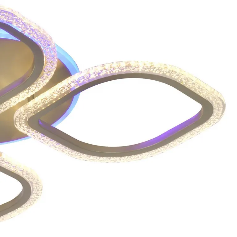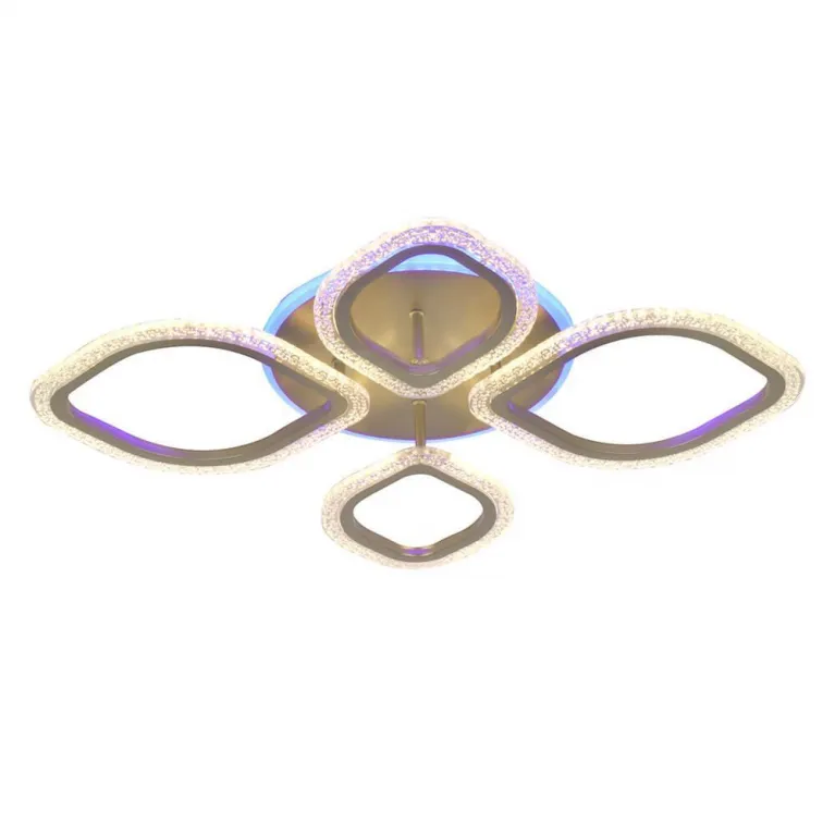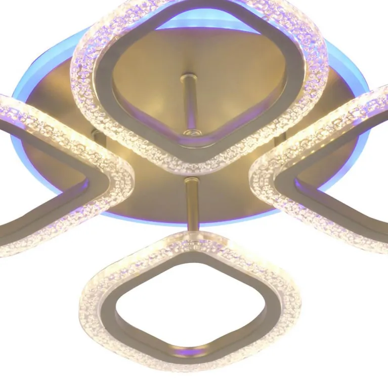 Люстра оснащена светодиодными источниками света, которые обеспечивают яркое и равномерное освещение. Возможность RGB-подсветки позволяет создавать разнообразные цветовые комбинации, добавляя интерьеру динамики и стиля. Суммарная мощность светодиодов составляет 90 Вт, что эквивалентно традиционным лампам накаливания, но при этом потребляет значительно меньше энергии.