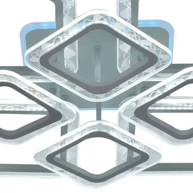 Люстра оснащена светодиодными источниками света, которые обеспечивают яркое и равномерное освещение. Возможность RGB-подсветки позволяет создавать различные цветовые комбинации, делая обстановку более динамичной и современной. Суммарная мощность светильника составляет 9 Вт, что эквивалентно традиционным лампам накаливания, но при этом обеспечивает более экономичное и долговечное освещение.