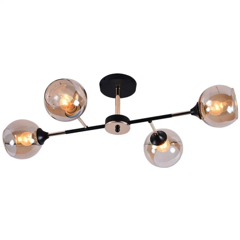 Люстра оснащена четырьмя лампами, которые совместимы с цоколем E14 и позволяют использовать различные виды ламп - от традиционных до энергосберегающих и светодиодных. Суммарная мощность ламп - 120 Вт, что обеспечивает яркое и равномерное освещение пространства.