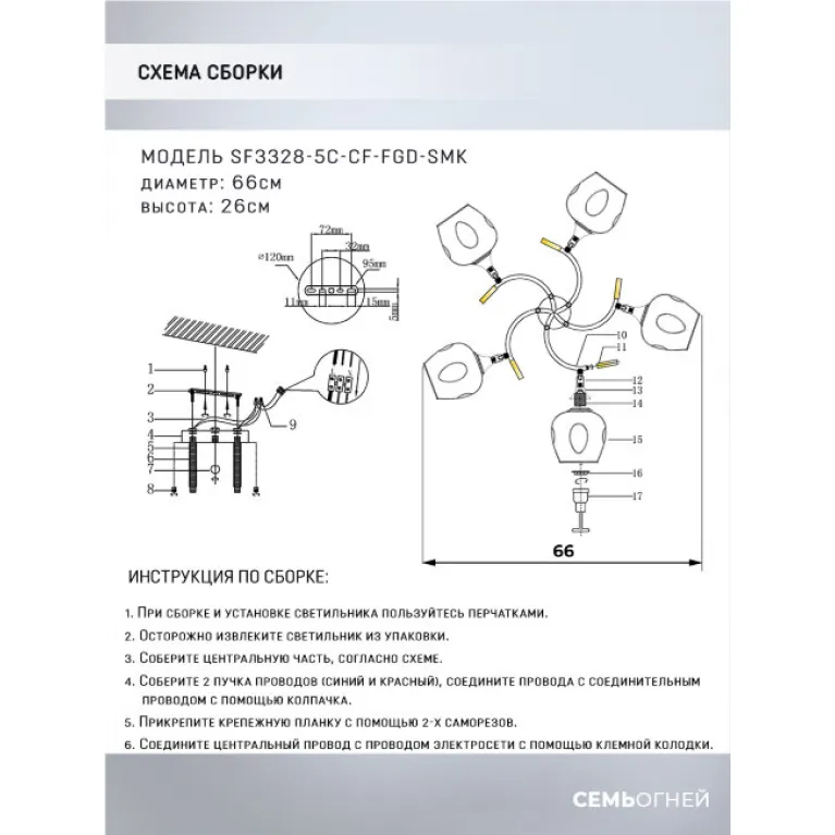 Артикул SF3328/5C-CF-FGD-SMK отвечает всем современным требованиям и стандартам качества, продукция сертифицирована. ✔ Гарантия от производителя. Цена люстры Seven Fires Mouzes SF3328/5C-CF-FGD-SMK до 5 040 ₽(в магазине «Иллюзия Света» регулярно проходят скидки и акции, следите за обновлениями). Сведения о технических характеристиках, габаритах, внешнем виде и комплектации носят справочный характер, при возникновении вопросов обращайтесь к нашим менеджерам по телефонам ☎ +7(495)489-84-89 ☎ +7(800)707-70-34 или отправьте нам сообщение онлайн с помощью чата в углу экрана.