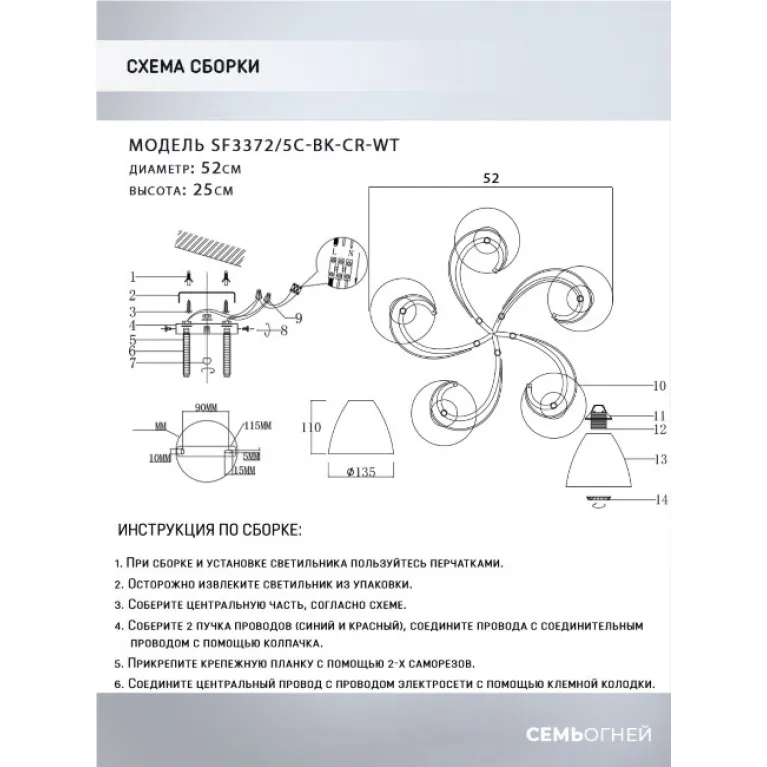 Артикул SF3372/5C-BK-CR-WT отвечает всем современным требованиям и стандартам качества, продукция сертифицирована. ✔ Гарантия от производителя. Цена люстры Seven Fires SF3372/5C-BK-CR-WT до 4 700 ₽(в магазине «Иллюзия Света» регулярно проходят скидки и акции, следите за обновлениями). Сведения о технических характеристиках, габаритах, внешнем виде и комплектации носят справочный характер, при возникновении вопросов обращайтесь к нашим менеджерам по телефонам ☎ +7(495)489-84-89 ☎ +7(800)707-70-34 или отправьте нам сообщение онлайн с помощью чата в углу экрана.
