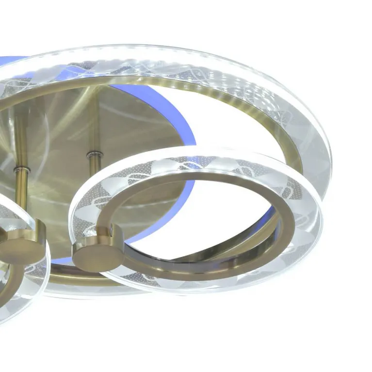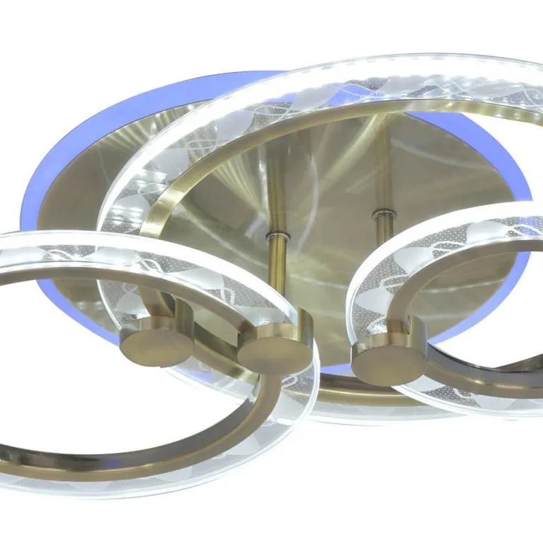 Эта люстра оснащена светодиодными источниками света, которые обеспечивают яркое и равномерное освещение. Возможность RGB-подсветки позволяет создавать разнообразные цветовые оттенки, добавляя интерьеру динамики и уникальности. Суммарная мощность светильника составляет 96 Вт, что обеспечивает достаточное освещение даже для просторных помещений.