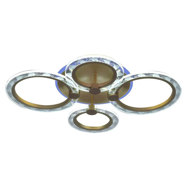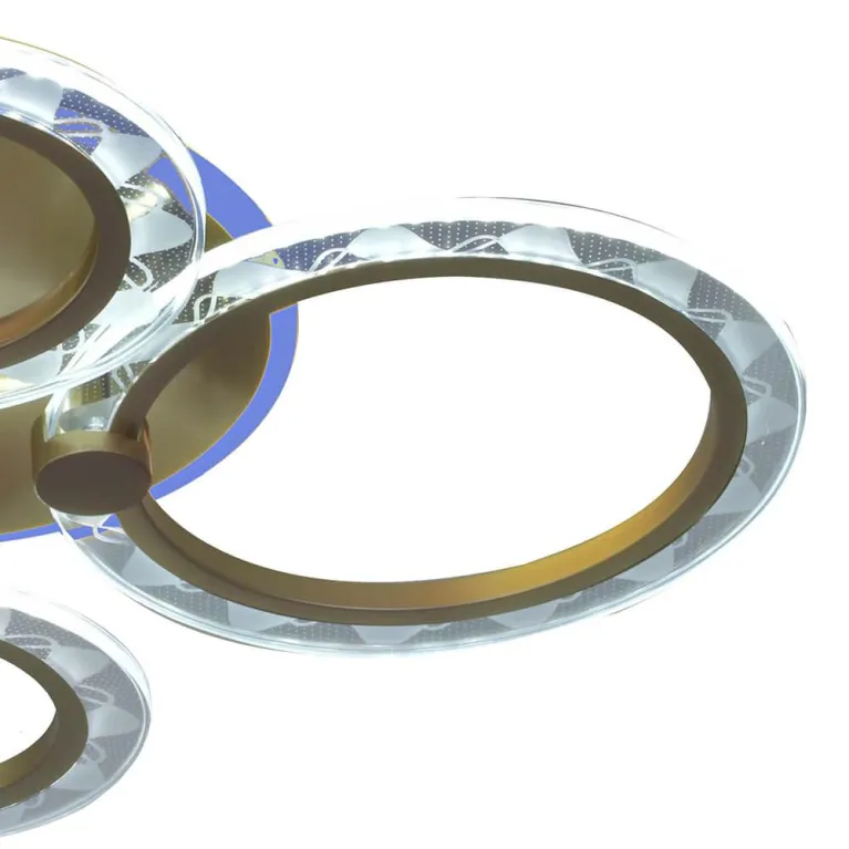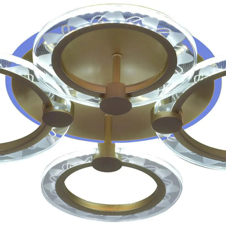 Эта люстра выполнена в современном стиле и имеет эффектный внешний вид благодаря сочетанию матового золота и прозрачного акрила. Она оснащена пультом дистанционного управления, что обеспечивает максимальный комфорт при использовании светильника.