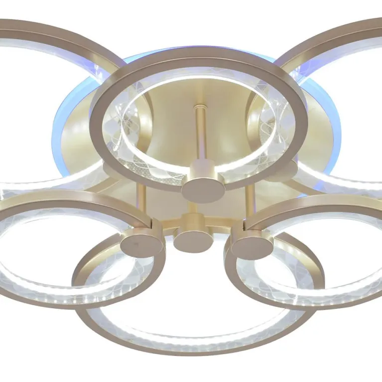 Люстра оснащена RGB-светодиодами, что позволяет создавать различные цветовые оттенки света - от теплого белого до холодного голубого. Это делает её идеальным выбором для тех, кто хочет разнообразить освещение в своем доме и создавать уникальные атмосферы в зависимости от времени суток и настроения.