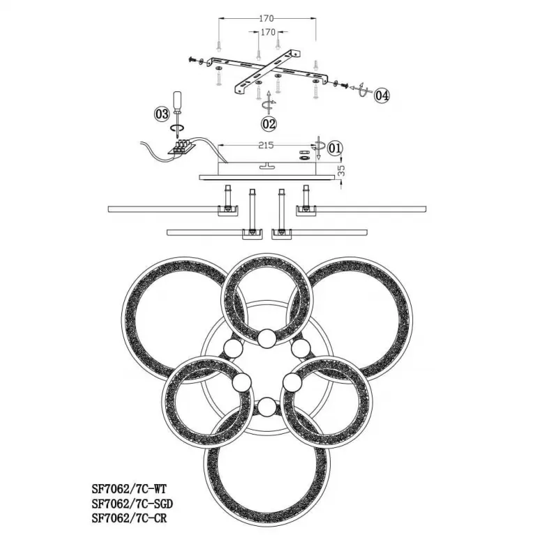 Светильник имеет лаконичную и функциональную конструкцию, которая монтируется на потолок и не занимает лишнего пространства. Такое решение идеально подходит для гостиной, столовой или спальни, добавляя уюта и гармонии вашему дому.