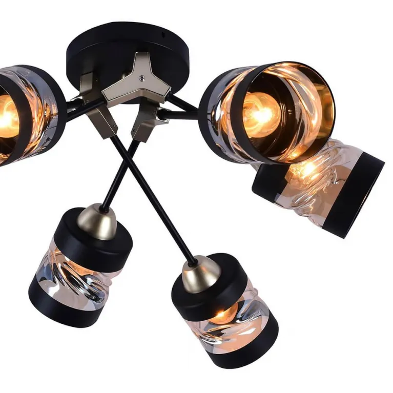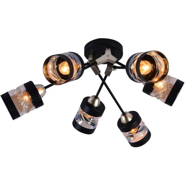 Люстра оснащена шестью источниками света с цоколем E27, что позволяет использовать различные типы ламп, включая энергосберегающие и светодиодные. Такое решение обеспечивает яркое и качественное освещение, подходящее для различных задач и настроений.