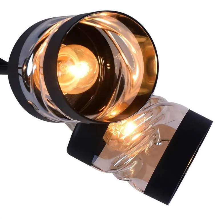 Корпус люстры выполнен из прочного металла с черным матовым покрытием, который прекрасно гармонирует с различными стилями интерьера. Плафоны из белого матового стекла придают свету мягкость и равномерность распространения, создавая комфортное освещение в помещении.