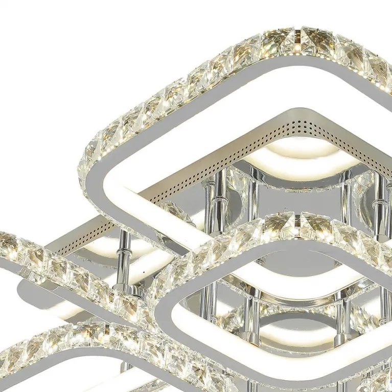 Люстра оснащена энергоэффективными светодиодами, обеспечивающими мощность 96 Вт, что гарантирует яркое и равномерное освещение. Цветовая температура 3000 К добавляет теплоты и уюта вашему дому. Световой поток в 5120 Лм позволяет осветить даже самые большие комнаты, делая их светлыми и просторными.