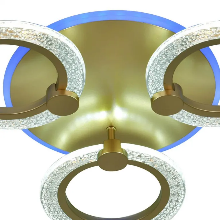 Корпус люстры выполнен из прочного металла и имеет эффектное матовое золото покрытие, которое придает изделию роскошный и современный вид. Плафоны изготовлены из высококачественного акрила и обеспечивают равномерное распределение света.