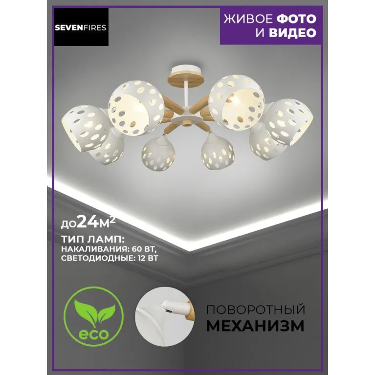 Потолочная люстра Seven Fires Trine SF3325/8C WT WD - это элегантное и стильное решение для вашего интерьера. Она идеально подходит для помещений со стандартными потолками, таких как гостиные, столовые или спальни, добавляя им утончённой роскоши и уюта.