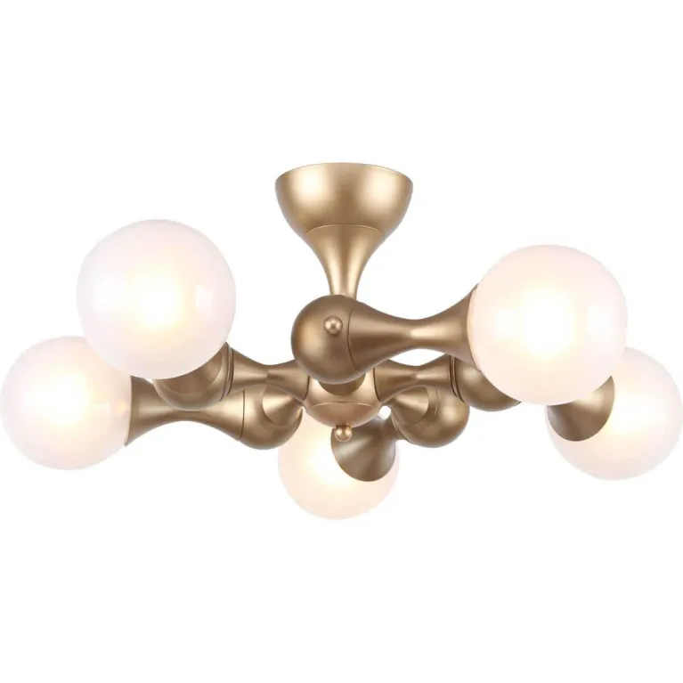Люстра оснащена пятью источниками света с цоколем E27, что позволяет использовать различные типы ламп, включая энергосберегающие и светодиодные. Такое решение обеспечивает яркое и качественное освещение, подходящее для различных задач и настроений.