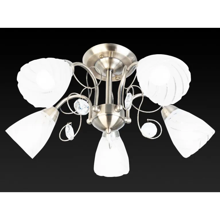 Люстра оснащена пятью лампами, которые совместимы с цоколем E14 и могут использоваться как для традиционных ламп накаливания, так и для энергосберегающих или светодиодных ламп. Суммарная мощность ламп составляет 300 Вт, что обеспечивает яркое и равномерное освещение пространства.