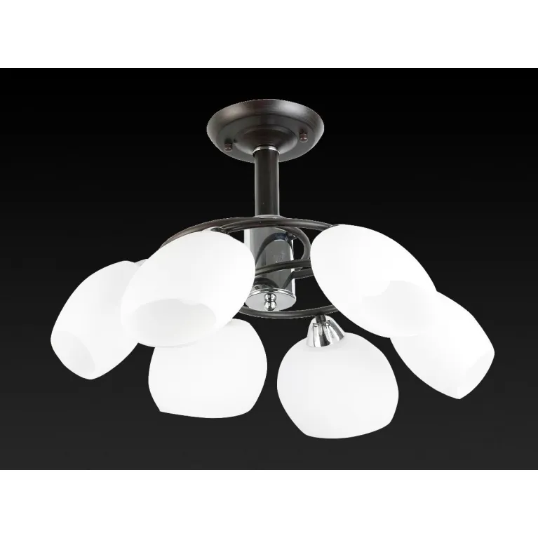 Люстра оснащена шестью источниками света с цоколем E27, что позволяет использовать различные типы ламп, включая энергосберегающие и светодиодные. Суммарная мощность ламп — 360 Вт, что обеспечивает яркое и равномерное освещение пространства.