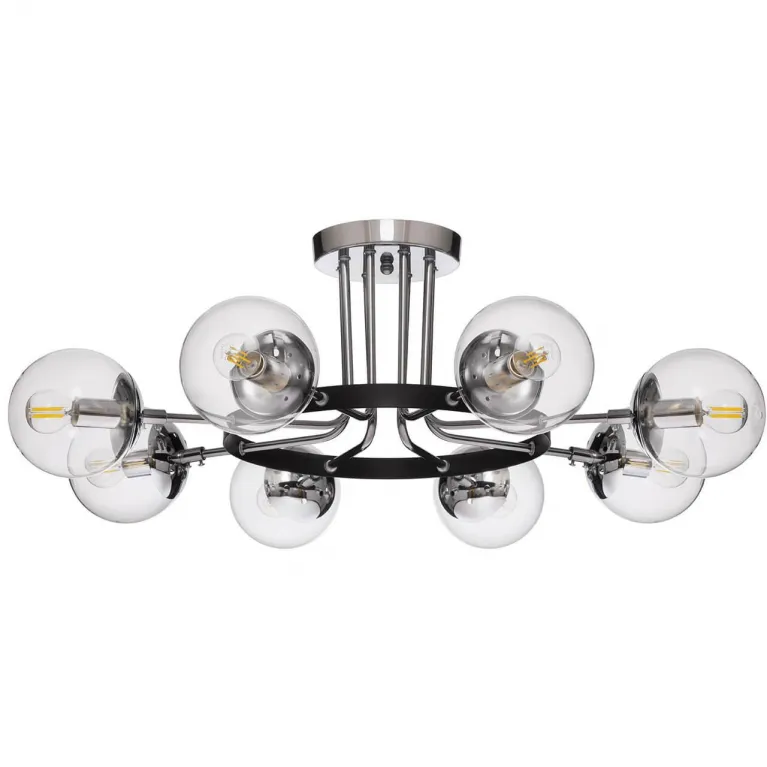Она оснащена восемью источниками света с цоколем E14, что позволяет использовать различные виды ламп, включая энергосберегающие и светодиодные. Суммарная мощность ламп составляет 320 Вт, что обеспечивает яркое и равномерное освещение пространства.