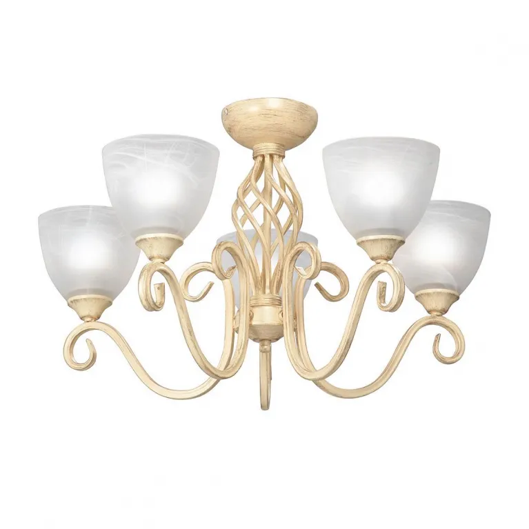 Люстра оснащена пятью лампами, что обеспечивает яркое и равномерное освещение пространства. Она идеально подходит для гостиной, столовой или спальни, создавая приятную атмосферу и делая комнату более просторной и светлой.